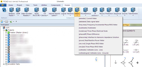 - Startpageにあるものと同じく、PSCAD側で用意されている部品をまとめて格納しています。
