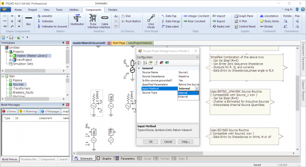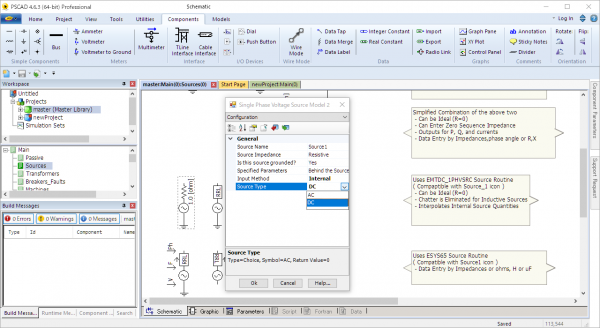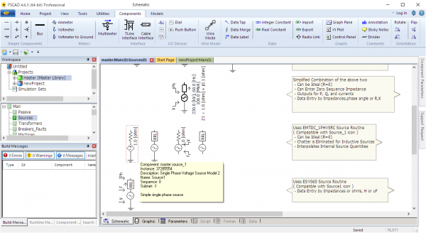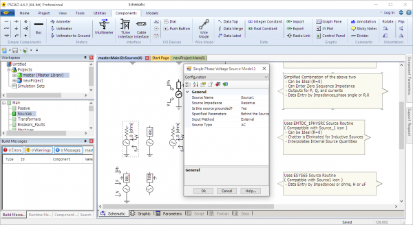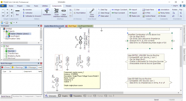 PSCADにおける単相電源は「Sources」の4段目に配置されています。