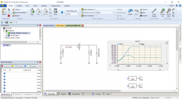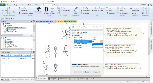PSCADでは、三相電源を単線表記及び三線表記することができます。