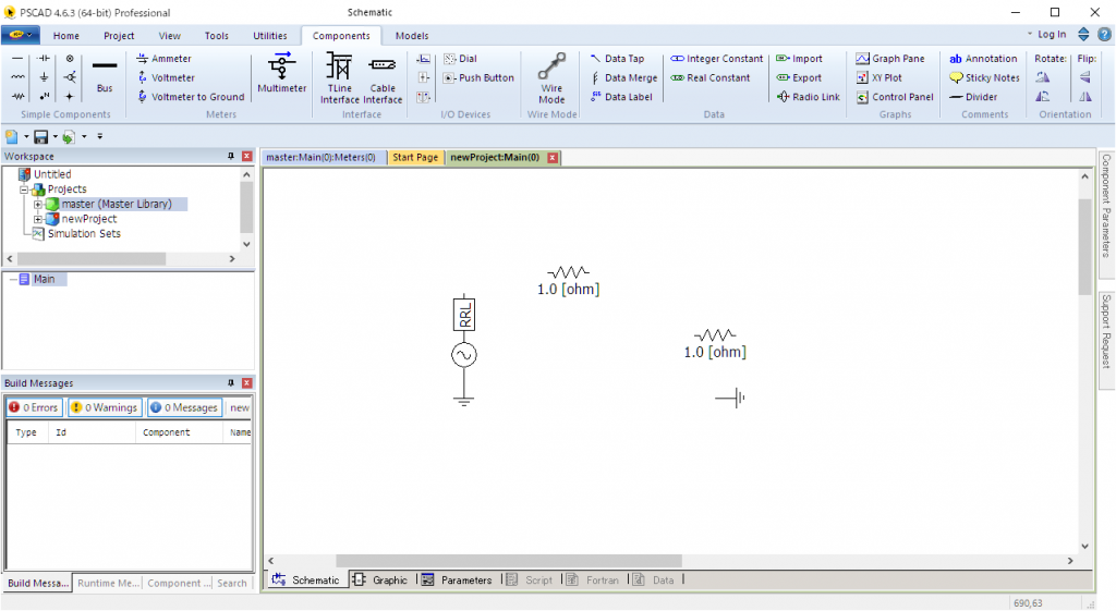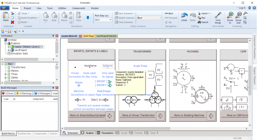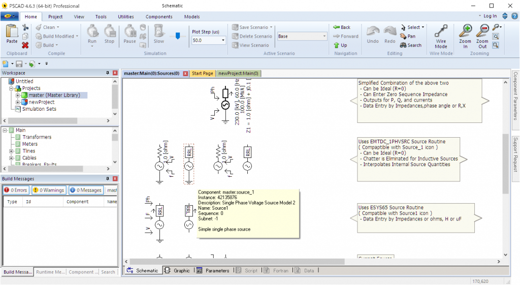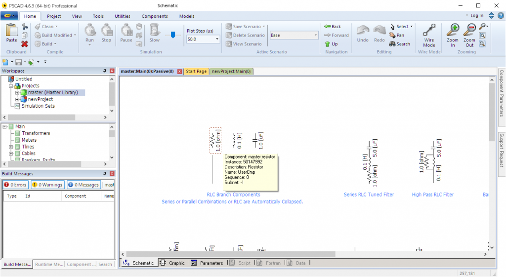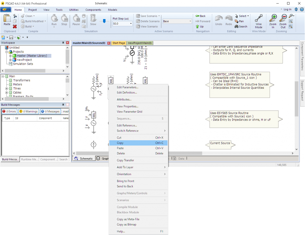 ここでは、PSCADにはどのような部品が備わっているかも見たいため、前者の「Master Library」を利用する方法を解説します。