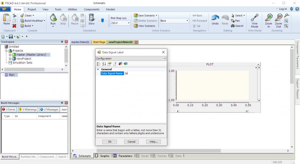 他の部品のパラメータを変更するときと同様に、信号名をダブルクリックして「Data Signal Name」を決定します。